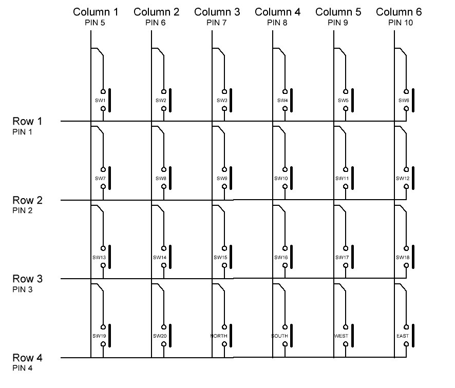 If offers 24 pairs of pins, so that each button or rotary encoder has its own dedicated pins (the alternative would be connecting buttons this way, as explained in the Pro-Race product page).