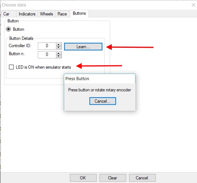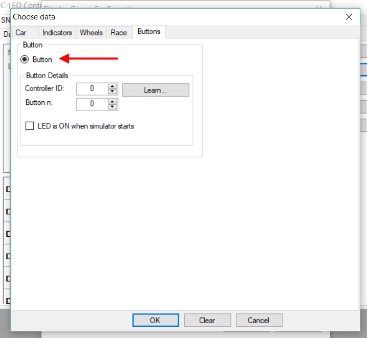 - Click the button highlighted in the picture above and choose which button will be associated to the LED.