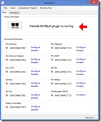 - Start the “Remote SimDash” plugin on the secondary computer, selecting it from the “Simulators Plugins” menu: